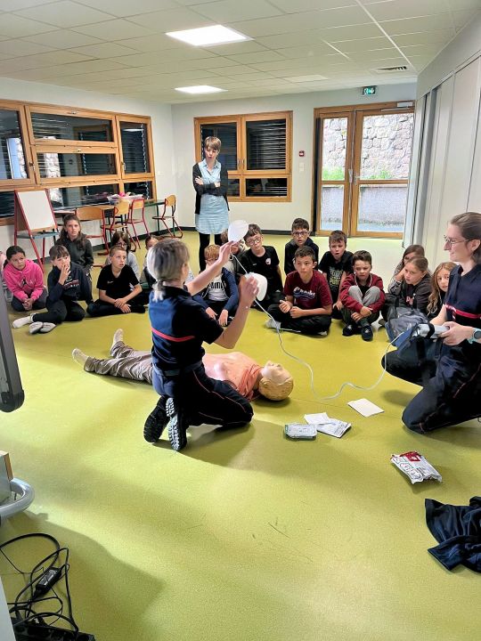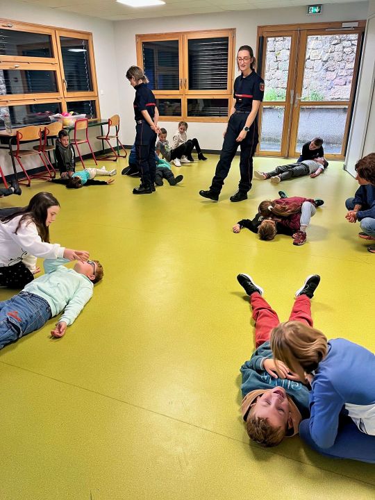 Grâce à l’intervention de deux pompiers bénévoles de la caserne de Montfaucon, Pauline et Amélie, les élèves des classes CE et CM ont pu bénéficier d’une matinée destinée à maitriser les principes simples de base pour porter secours de manière efficace et rapide.